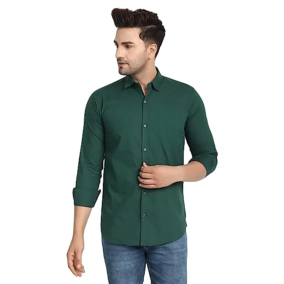 64fed4a840a3261c87d3c77bMen's Green Solid Regular Fit Cotton Casual Full Sleeves Shirt