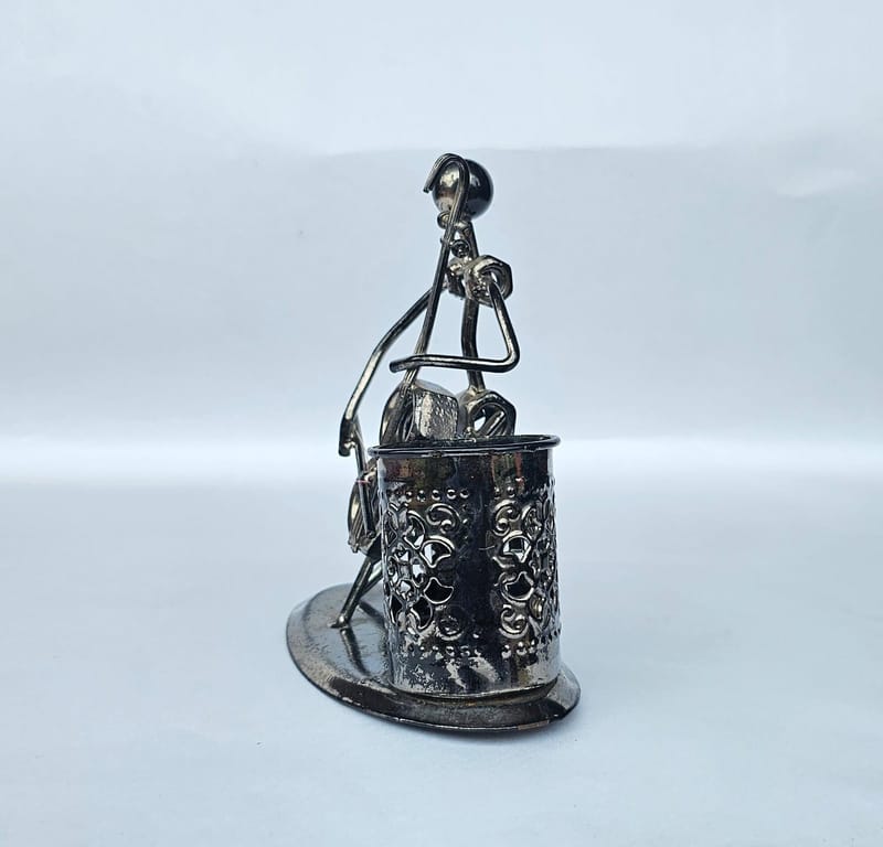 Looking for a unique and stylish way to store your pens and pencils? Look no further than our metal sculpture pen holder! This beautiful piece of art is made from high-quality metal and features a intricate design of a musician playing the cello. It's sure to add a touch of sophistication to your desk or office.