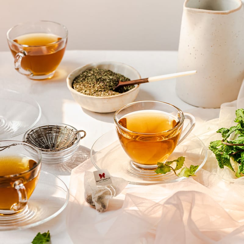 This invigorating, fragrant mint infusion tea is a breath of freshness on a long day. Mint is a potent digestive herb, which makes this infusion an ideal post-meal choice. The list of benefits of fresh mint infusion healing herb runs long, particularly its detoxifying, cooling, and relaxing effects.
