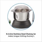 | Includes | Base Unit, Liquidiser jar with lid, Grinder jar with lid, Chutney Jar with lid, User's Guide. |