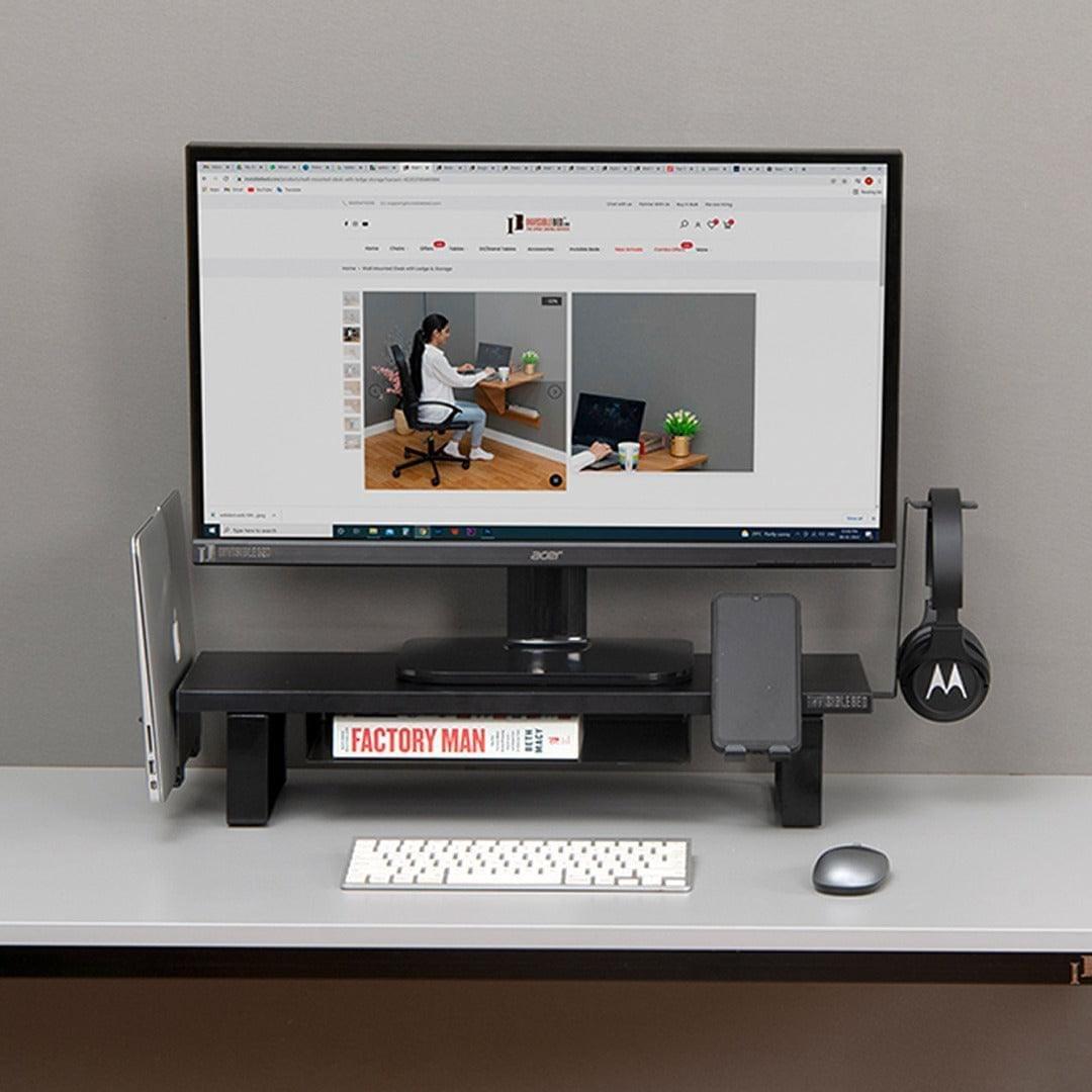 The Lap Desk is a simple yet versatile piece of furniture that is a must-have for any modern household. INVISIBLE BED Sturdy Heavy Duty Monitor Riser Stand with Phone Holder, Laptop Holder, Book Shelf. Designed to provide you more storage space to organize your desktop conveniently, store your keyboard and office supplies underneath the desktop stand.