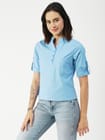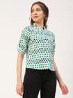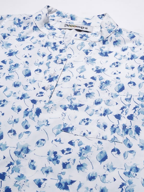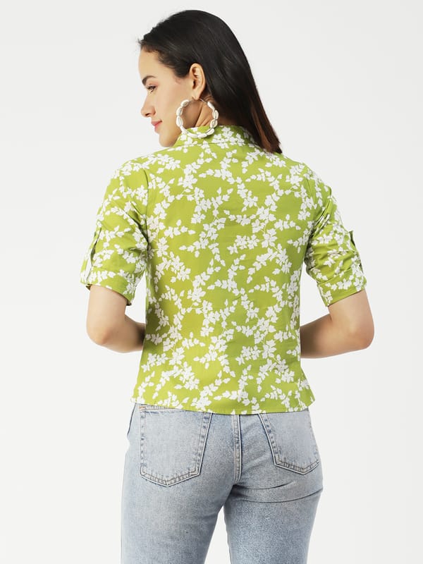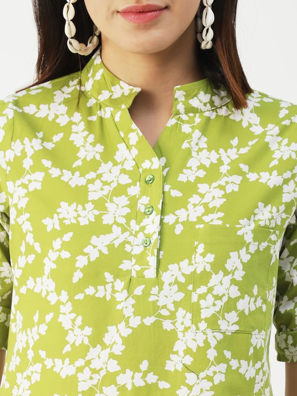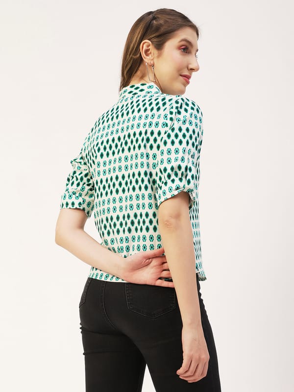 Features: elbow sleeves, front buttoned, waist length, single front pocket, lightweight and all over printed pattern