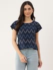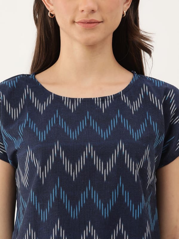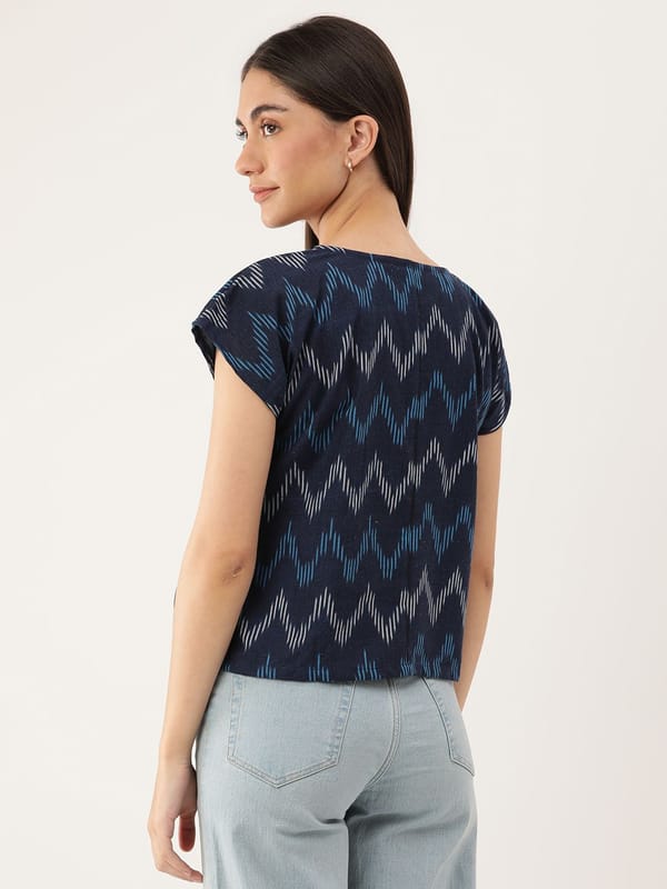 "Navy Blue Elegance: Embrace Timeless Style with this Ikkat Print Top!"