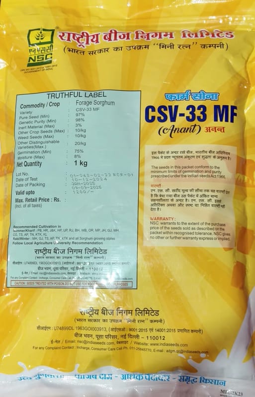 The Fodder Sorghum Anant variety, also known as CSV 33 MF, is a premium, multi-cut fodder sorghum grass specifically bred for high yield.