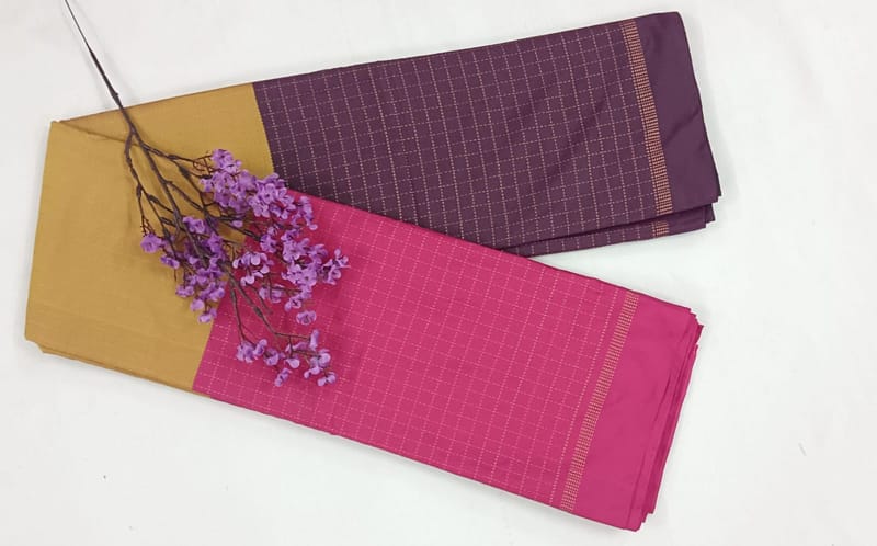 Read MoreThis saree has tricolor throughtout saree and checked design along with blouse material
