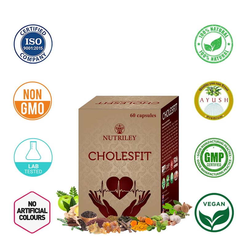 Nutriley Cholesfit Cholesterol Control Capsules is the most powerful ayurvedic cholesterol-fighting capsules. In fact, we believe Advanced Cholesterol Control to be one of the most powerful cholesterol-fighting combinations of ingredients you can take to help you reach and maintain normal and healthy cholsterol levels. Reduces bad cholsterol. Keeps heart healthy and prevents nerve blockage. Improves Heart Function. Improves Metebolism and burn extra body fat. Keeps Cholesterol in Control. Improves energy, endurance and tolerance.