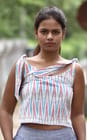 This Ocau Set is made purely of cotton, and the fabric is made in handloom , making sure you feel less heat in this summer. This regular fit is woven with V-neck detail. It has strap sleeves which can be beautifully tied. The Pant is wide leg and has an ikkat border.