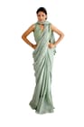 This handloom pure cotton saree is made by the weavers of Bengal. It comes with a white attached blouse piece. The saree is extremely high quality. The pallu/selvedge comes witH stripes. This product is a part of stripe saree collection. It is ...