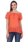 Solid Color Chiffon Blouse / top. Front Tie-knot styled.Bobbin elastic neck allows to wear it as either off-shoulder top or boatneck style.
