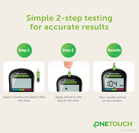 OneTouch Select Plus test strips are used with OneTouch blood glucose meters for monitoring blood glucose levels, particularly in individuals with diabetes. OneTouch Select Plus test strips are designed to provide accurate and reliable blood glucose level measurements and calibrated to minimize potential errors. It requires small blood sample. OneTouch Select Plus test strips are pre-coded, so you don't have to worry about coding your meter.