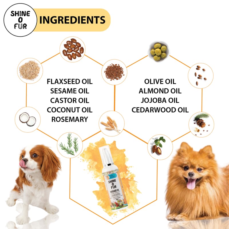 Shine O’ Fur Massage Oil is the solution to your dog’s happy and relaxed day. Blended with soothing natural oils and ingredients to calm and soothe your pet, Shine O’ Fur Massage Oil reduces shedding and dryness and nourishes ...
