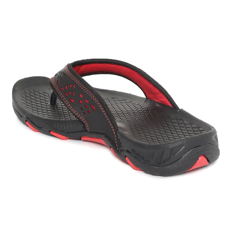 Make a stylish splash across town with these black and red comfortable and durable flip flops for men from Paragon. Featuring a sturdy construction and fine details, these dual tone casual flip flops for men are everyday essentials that add ease to your step. The textured sole is complemented with sturdy, broad V-Straps for a comfortable walk.