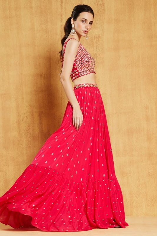 Grace yourself with these mesmerizing Indian Lehengas specially curated for today’s women. Made with soothing, comfortable fabrics and finished with colorful handcrafted embroidery these Lehengas are perfect to opt for any wedding occasio...