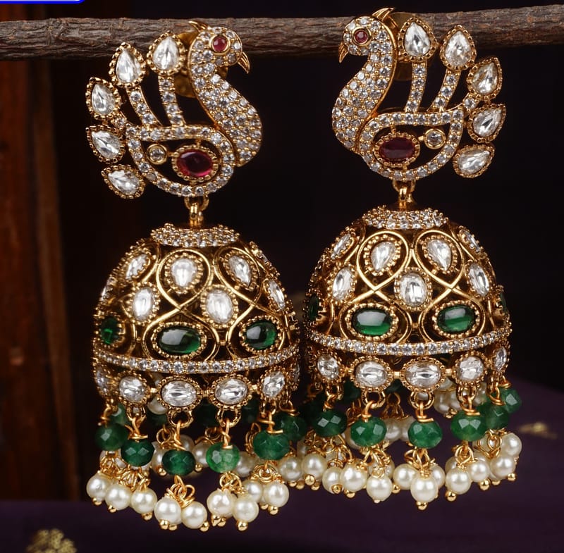 | Common name | Peacock Chandbali Earrings with Green Stones and Pearls |