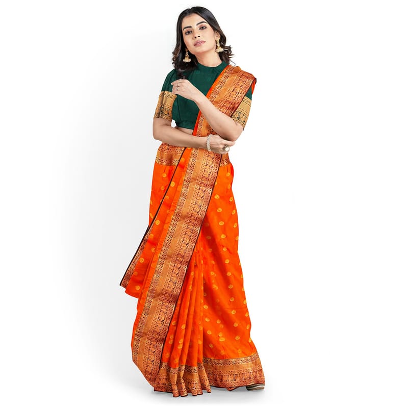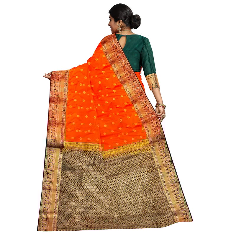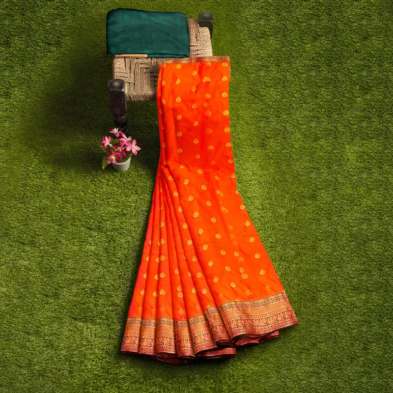 Read MoreTraditional medium border with beautiful zari woven butta designed saree,