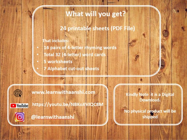- 32 4-letter word cards (16 pairs of rhyming words)