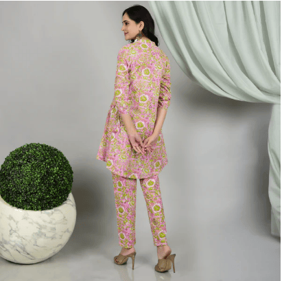 PINK HAND BLOCK PRINTED PURE COTTON CO-ORDS, SET OF 2
