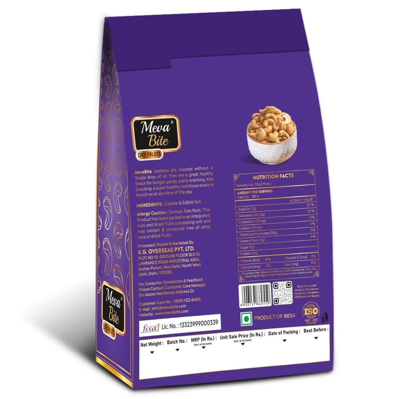 Explore a wide range of cashew from the house of MevaBite available on Amazon. You can eat cashews in raw, roasted, salted and unsalted forms. Like any nut, cashews are a storehouse of energy and essential nutrients. Rich in protein, healthy fa...