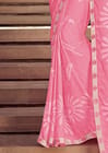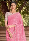 Faux Georgette Saree in Pink with Abstract Print and Patch Border Work