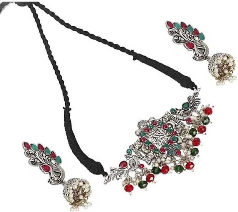 Pujvi Fashions Represents Oxidised Multicolor Crystal Beads Choker Necklace set