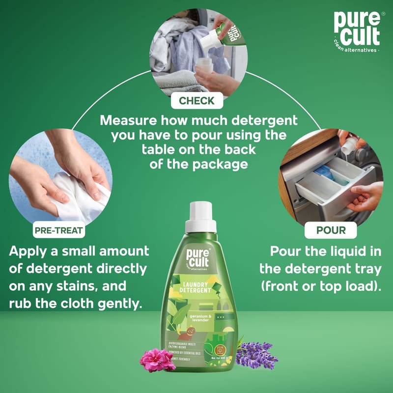64881b514d4140c789a1a9b6PureCult Liquid Laundry Detergent with Geranium and Lavender Essential Oils 500ml Combo (Pack of 2)