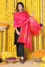 High Quality Pure Silk Paithani Dupatta Collections are a break to your regular lineage of dupattas. The royal embodiment of beautiful Handwoven Paithani Buttis, Zari Border And Paithani Handweave on the ends , adds a surreal edition of f...