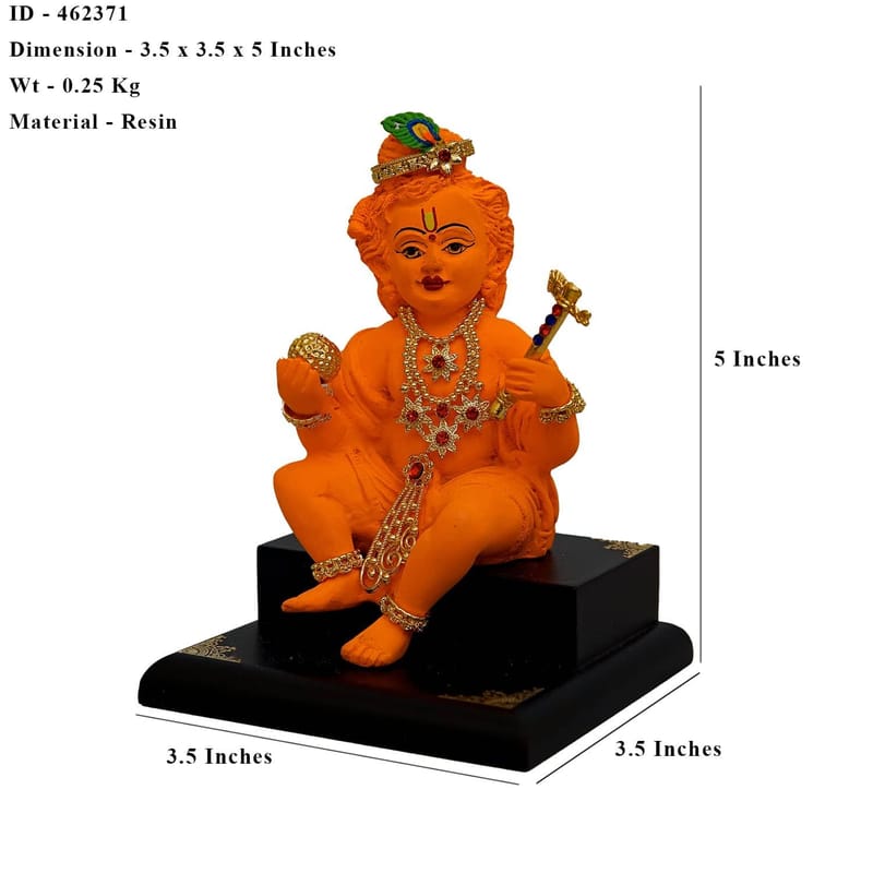 Enhance your surroundings with the spiritual and playful essence of the Polyresin Bal Krishna Ladoo Gopal Idol. Designed to fit seamlessly into small spaces, this idol is a perfect blend of tradition, artistry, and practicality.