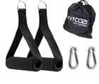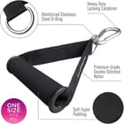 ONE SIZE FITS MOSTSuper wide design to accommodate most hand sizes, workout handles are designed to be wider and more comfortable than normal exercise handles. | SOLID D-SHAPED BUCKLE FOR EXTRA STRENGTHSolid, thickened design metal D-shaped buckle that fully withstands regular workout tensions and is sturdy and durable. | HIGH-QUALITY ABS TUBE & THICKENED NYLON WEBBINGExercise bands are made from strong ABS, thickened nylon webbing,sweat-absorbent, non-slip and comfortable to the touch. Ultra-durable fitness handles for bodybuilders and fitness enthusiasts. | REPLACEABLE HANDLES and VERSATILE USEThe handles for exercise bands can be used with many different gym machines as well as resistance bands, perfect for resistance bands, home gyms, and cable machines, rowing machines, fitness machines, etc. |