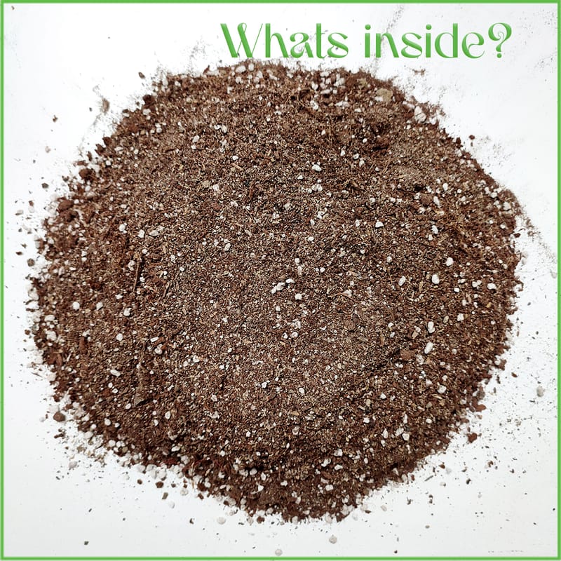 Soil, cocopeat, perlite, husk, organic NPK, and our specially crafted soil conditioner Suhali Nitro+.