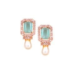 64db7b81bbf83a3121e2014eRose Gold Plated Aqua Color American Diamond Earrings