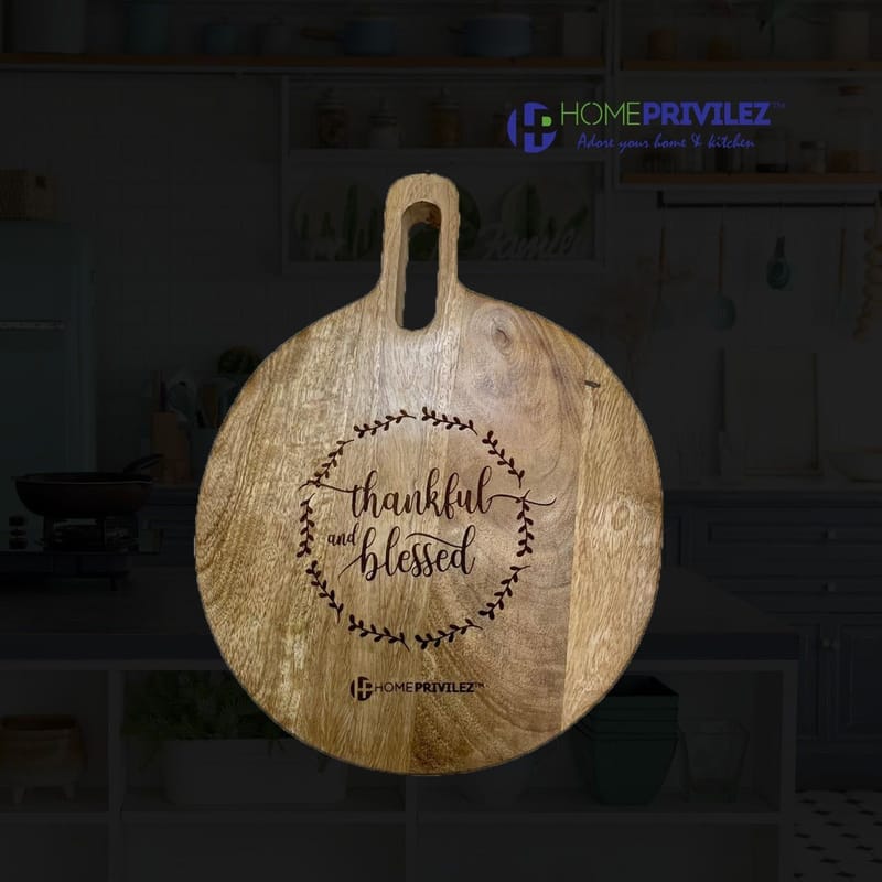 “HOMEPRIVILEZ” handcrafted Mango Wood Chopping Board with beautiful design. Perfect accessory for making kitchen decorative and antique. The wood is highly durable and Hard – easy for Chopping of Vegetables, Cutting of Meat, Fish, Cheese and Fruit...