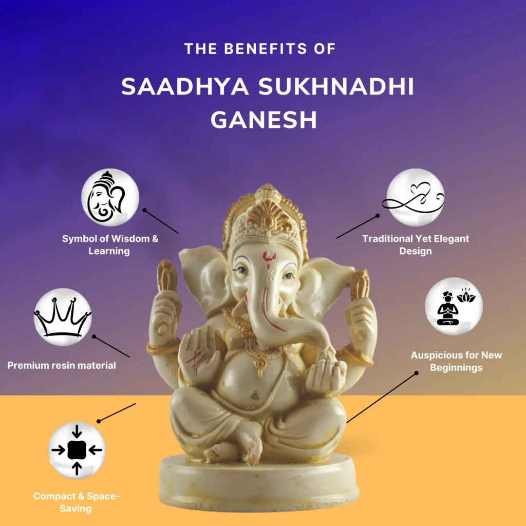 Bring home the calm blessings of Saadhya Sukhnadhi Ganesh and invite happiness, peace, and prosperity into your life.