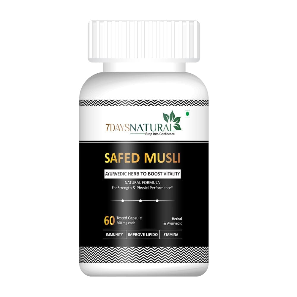 Introducing the “Safed Musli” Capsule by 7 Days popularly known as ‘Divya Aushadh’ or ‘White Gold’ the Safed Musli Capsule is formulated to revolutionize your well-being. Derived from the potent Safed Musli herb, this natural supplement is your key to a healthier, more vibrant life. Our capsule is formulated from 100% natural ingredients and is completely vegetarian. This commitment to purity ensures that you experience the full range of benefits Safed Musli has to offer without any compromise. Safed Musli, also known as ‘White Gold,’ is renowned for its multifaceted advantages. It’s not just about enhancing experiences in intimate moments; it’s about overall health and vitality. This remarkable herb has been used for centuries to promote vigor, vitality, and well-being. One of the standout benefits of our Safed Musli Capsule is its ability to boost muscle power. Whether you’re an athlete looking to improve performance or simply striving for better physical fitness, this capsule can help you reach your goals. Digestion is the cornerstone of good health, and our capsule supports it in every way possible.
