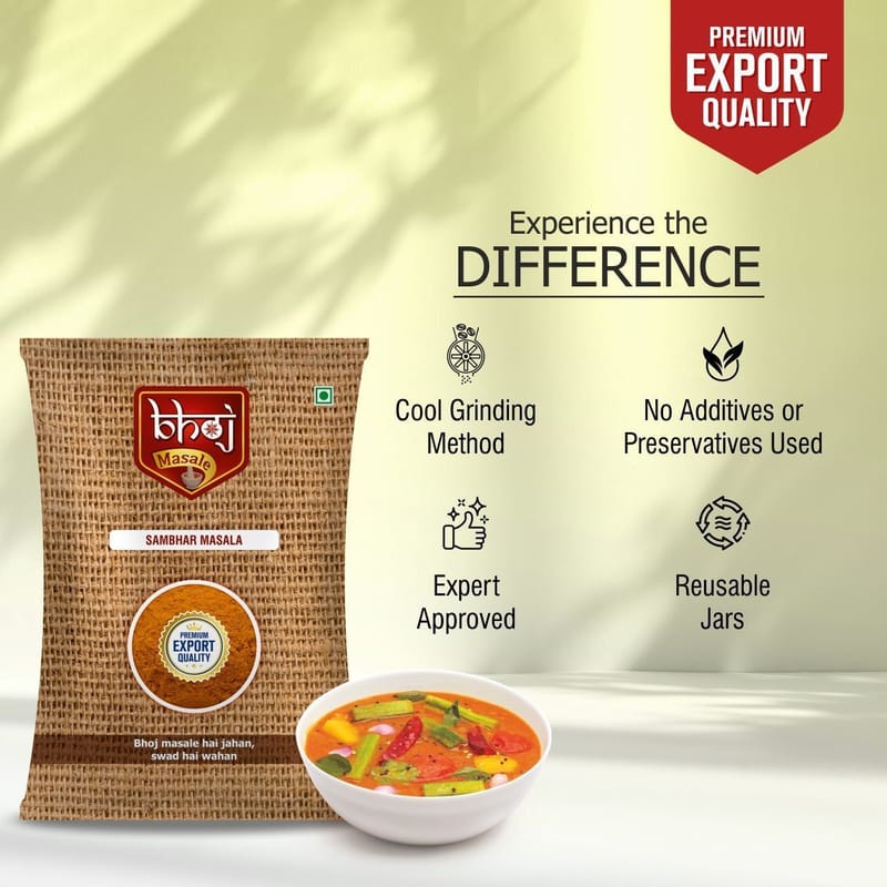 Welcome to the aromatic world of Bhoj Masale’s Sambhar Masala Powder! Our Sambhar Masala Powder is 100% Vegan. No Colour, No Pre...