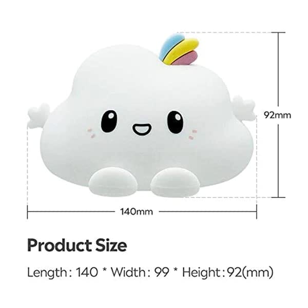 With a cute Cloud as your night light, you'll always have a smile on your face Introducing the Cute Silicon Cloud with USB Rechargeable Night Light and Gesture Control Sensor. This adorable night light features a Cloud that responds to your tou...