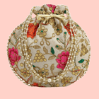 The Shagun Potli Bag is a traditional Indian pouch, embellished with embroidery or beads, used to carry auspicious gifts.