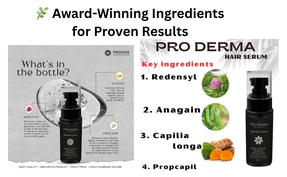 Introducing Pro Derma Hair Growth Biotech Serum 2.0, an advanced hair growth solution formulated with award-winning, clinically proven ingredients to combat hair thinning, stimulate regrowth, and improve overall scalp health. Infused with poten...