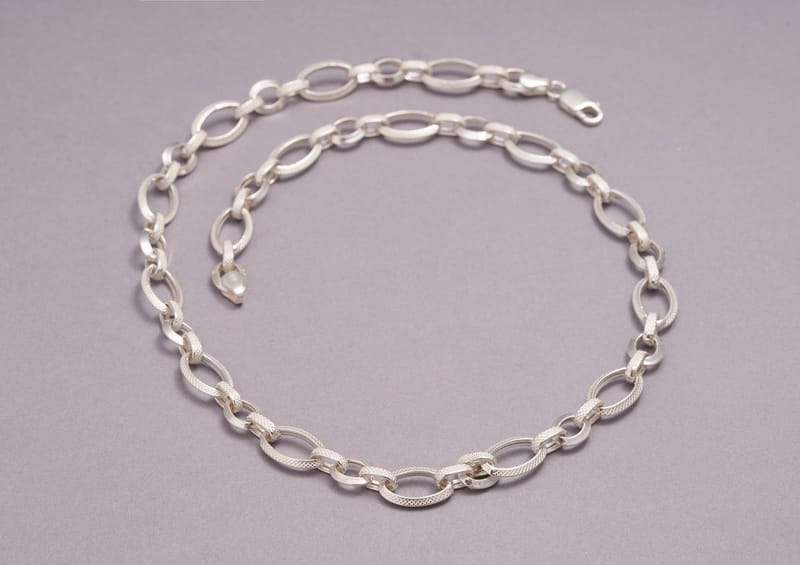 Unleash your inner style icon with this one-of-a-kind accessory. A necklace designed for the modern man with a flair for fashion, this exquisite piece is crafted from superior-quality Sterling Silver. The elongated links, connected by rings, of...