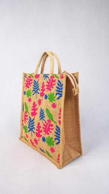 Bag has a stylish secure zip closure which protects your essentials. Helps you do your part in protecting the Environment by not throwing away paper and plastic bags. SIZE: LxWxH: 12x5x14.5 inch. Small sized units. Jute bag with strong Padded H...