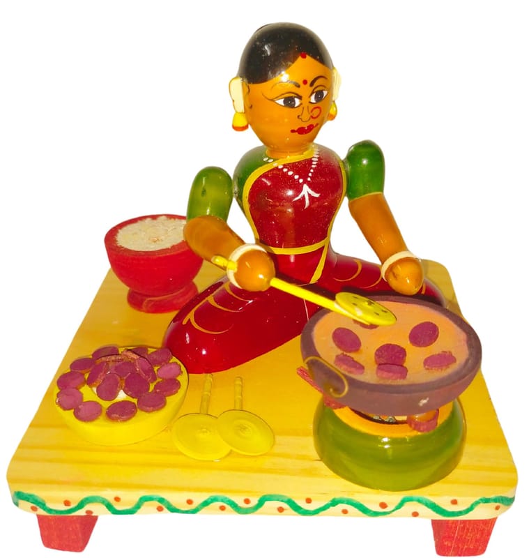 Etikoppaka Handicrafts Wooden Lady Selling Tiffins
