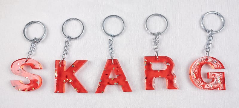 Handmade Nature inspired Resin key chain created using various glitter material, pressed and preserved natural plant material. Alphabets handmade keychains perfect for gifting or wallet, Anniversary, Birthday or must have piece for yourself.