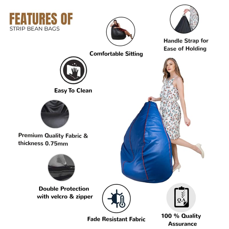 Enjoy ultimate relaxation and style with this XXL Leather Bean Bag Cover, featuring a unique strip design in Blue with a Red stripe. Whether you're gaming, lounging, studying, or just unwinding, this premium faux leather bean bag offers superior comfort and elegance.
