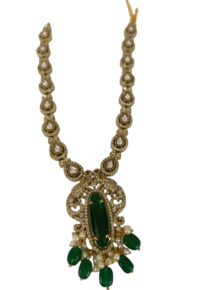 | Common name | Stunning Gold-Plated Kundan Necklace Set with Green Stones and Pearls |