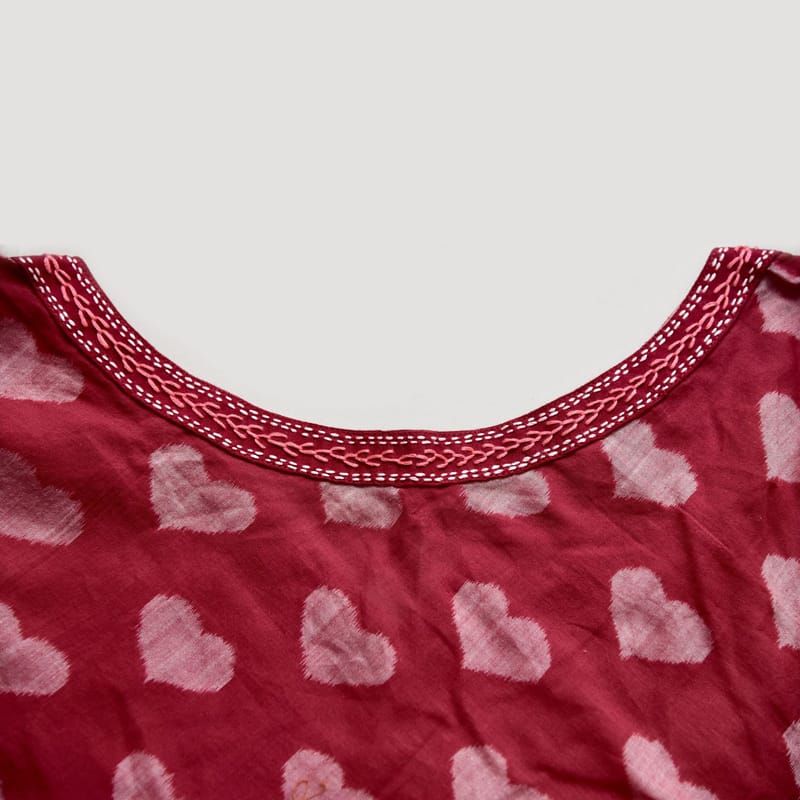 Introducing our Taash collection's newest addition, the Shine of Diamonds Red Poncho. This bright red Ikat poncho is perfect for adding a pop of color and personality to any outfit. Handwoven with the finest lightweight cotton fabric, this ponc...