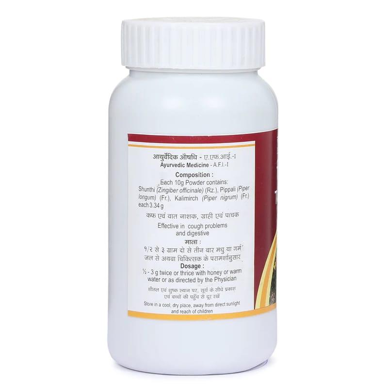 Trikatu Churna contains Vitamin C and antioxidants which boosts your immune system, helping you fight external microbes. Trikatu Churna also has antiviral and antibacterial properties, making it an ideal medicine for: