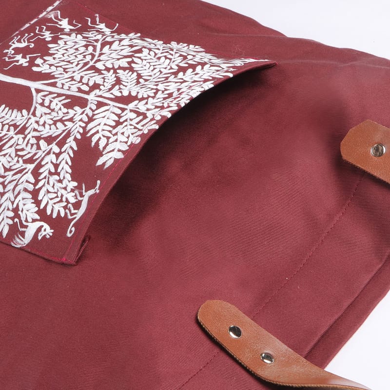 This bag is crafted with excellent-quality stitching. The warli artwork is done on a Pocket which gives a stylish look to the Tote bag.