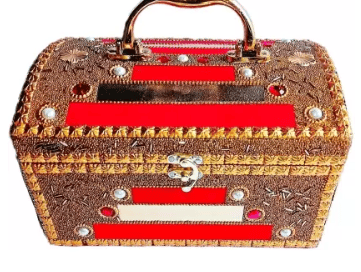 R J Enterprises MAKEUP BOX HALF RAJWADA This makeup box easily store more makeup without taking up too much space. Vanity Box (RED GOLDEN)