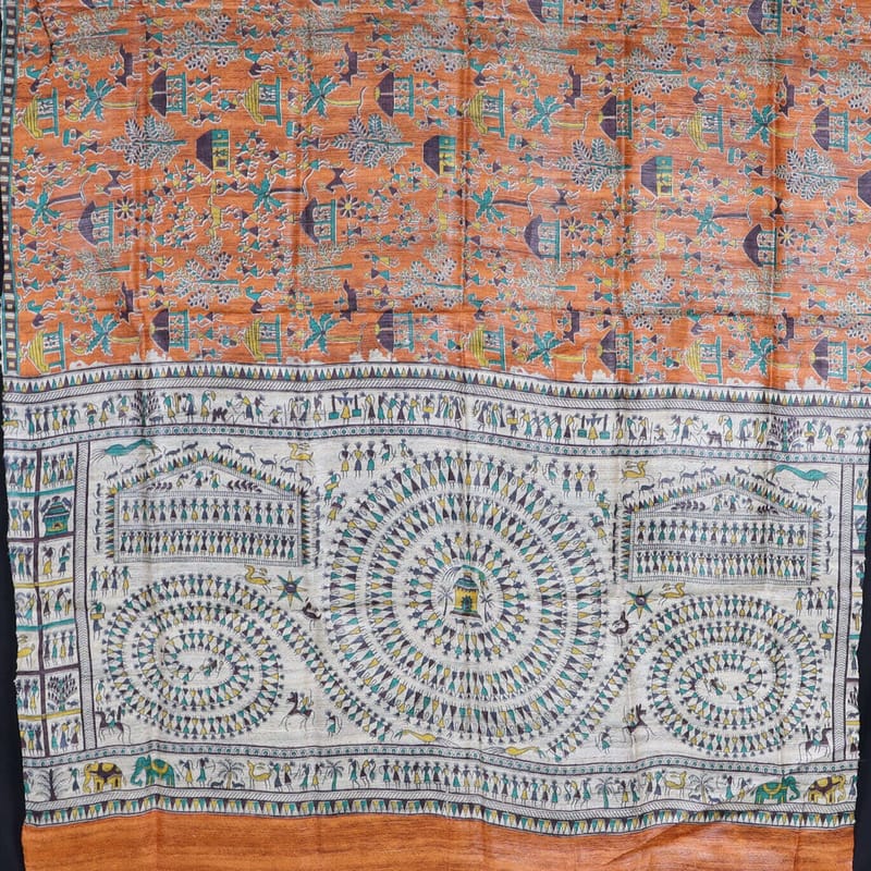 Tribal Design Multi Color Tussar Silk Dupatta