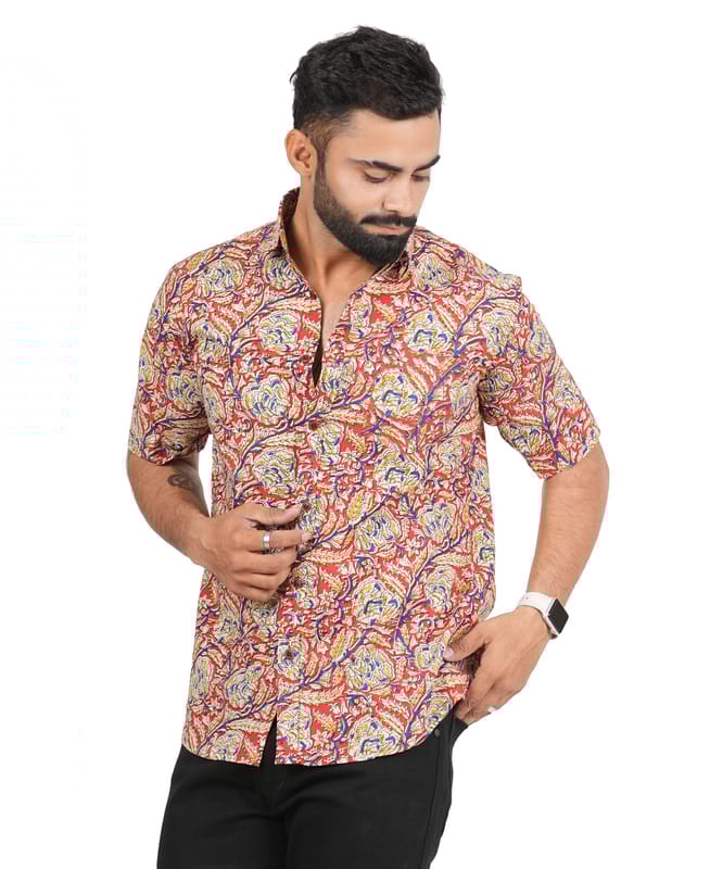 Indulge in the timeless elegance of our Hand Block Printed Short Sleeves Cotton Shirt for Men, a masterpiece from Tribes India skillfully created by tribal artisans. Immerse yourself in the rich heritage and cultural tapestry of India wit...