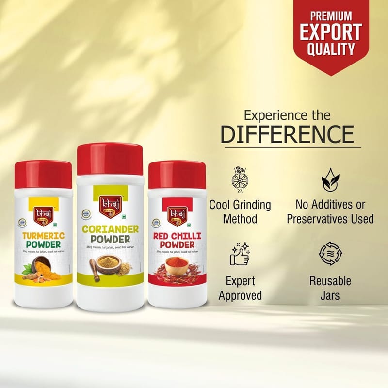 Read MoreThis Turmeric, Coriander & Red Chili Powder Combo offers 1500gm of premium quality ground spices. Perfectly balanced for optimal flavor, this combo packs intense aroma and a tantalizing taste. An essential kitchen stap...